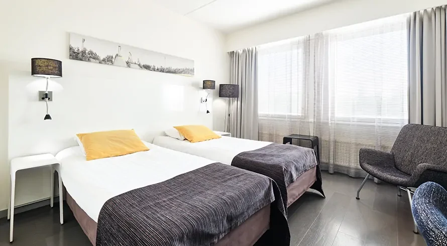 We invite you to stay right at the heart of the event location, lake view and sauna included.